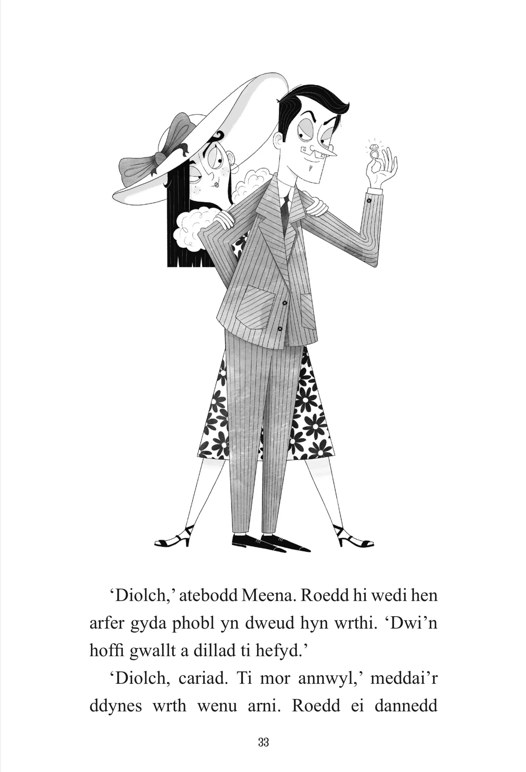 Aunt Carys’s shop, which is in the centre of the town, and which contains a very special ring – Carreg y Ffin – is a target for thieves who operate in secret. But who are these thieves that are trying to steal the ring? Meena and her cousin, Wil, try to solve the mystery.